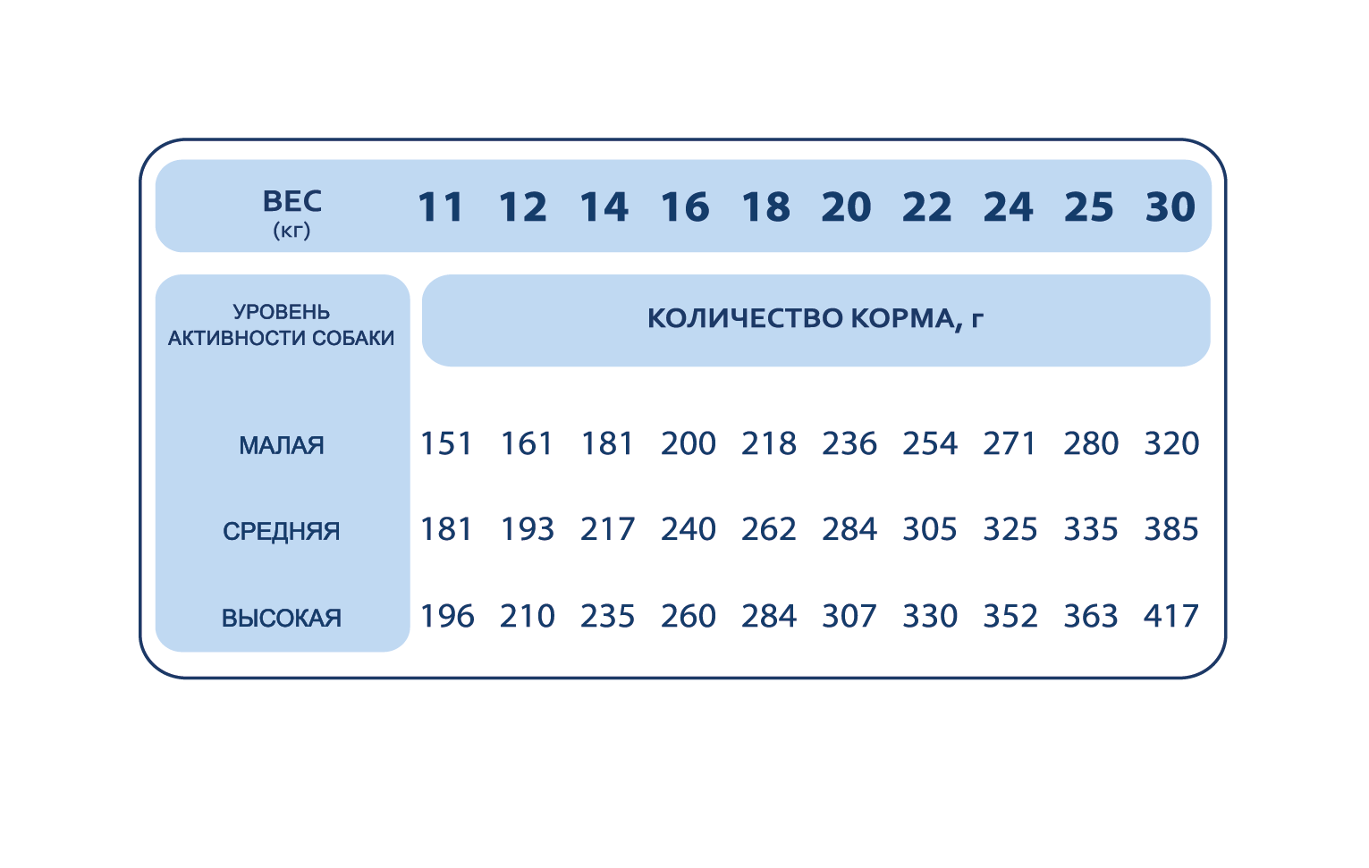 Рекомендации по применению: корм готов к употреблению. Суточная норма может варьироваться в зависимости от индивидуальных потребностей животного. Смотрите таблицу.